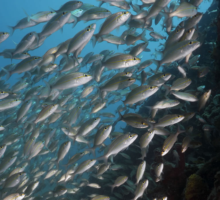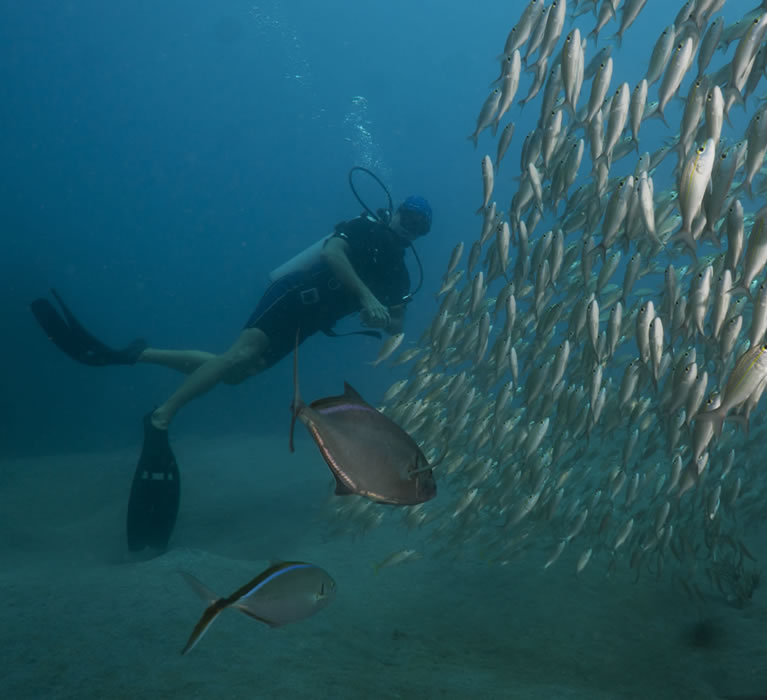 Sikt: fra 5-25m avhengig av overflate, bølger og vind/regn, men generelt meget god sikt.
