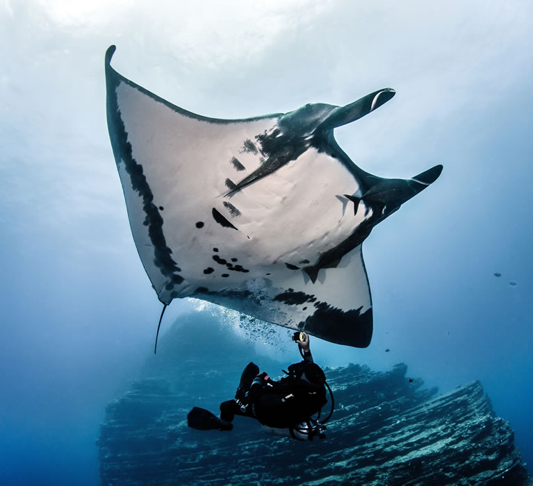 Å dykke eller snorkle med en manta er en uforglemmelig opplevelse, og noe alle dykkere burde oppleve! De digre, grasiøse rokkene er fullstendig harmløse, og lever bare av plankton og småfisk.