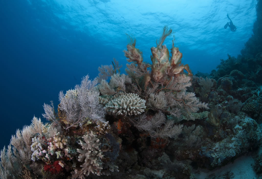 Mellom kantrevet og det ytre barriererevet er lagunen sterk blåfarget, som varierer fra turkis til ultramarinblå, oversådd med et av muligens det mest inntakte korallrevet i det Indiske hav. Korallrevet er bestående av lag på lag med kraller og under overheng og små og store åpninger i revet kan du ofte se skilpadder og en og annen rokke liggende i sanden.