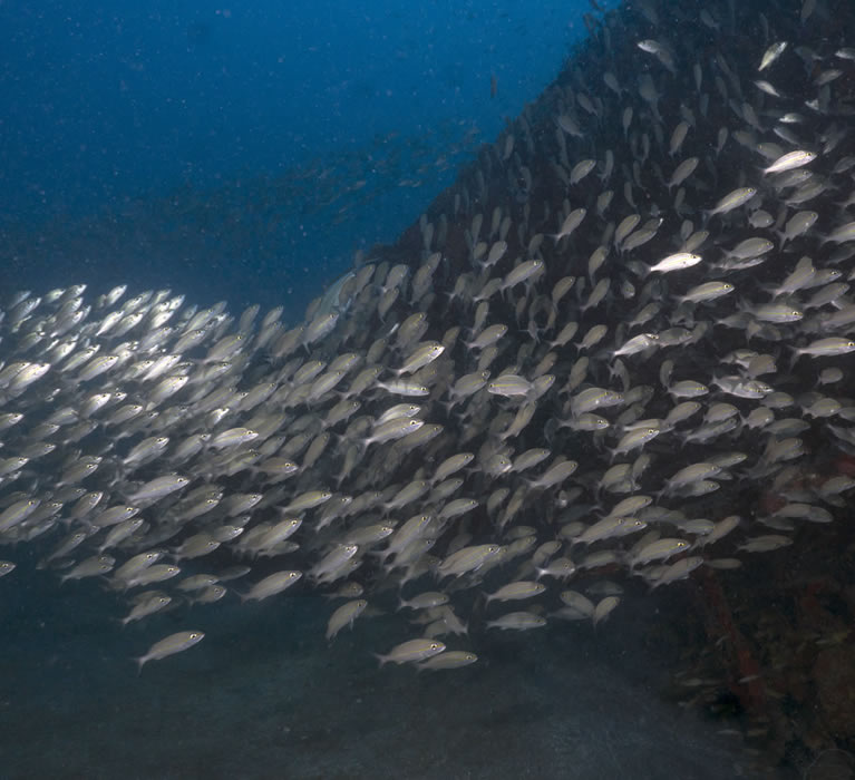Sikt: fra 5-25m avhengig av overflate, bølger og vind/regn, men generelt meget god sikt.