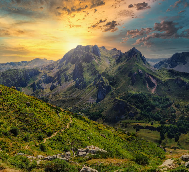 Det varierte landskapet i Spania vil trollbinde deg med sin skjønnhet, og fjellkjedene Pyreneene og Picos de Europa, er like vakre som alt annet. De snødekte Sierra Nevada stiger opp fra de solstekte slettene i Andalucia og det vil være et høydepunkt på reisen. De vakre klippene i det atlantiske nordvest, er motstykket til de sjarmerende buktene ved Middelhavet. Overalt hvor du går vil du se landsbyer med tidløs skjønnhet, der de ligger på bakketoppene, som klynger i dalene og klamrende til kystnære utsiktspunkt. De er som små, men motstandsdyktige utposter i det gamle Spania og er der hvor det er lettest å se sjarmen ved dette landet.