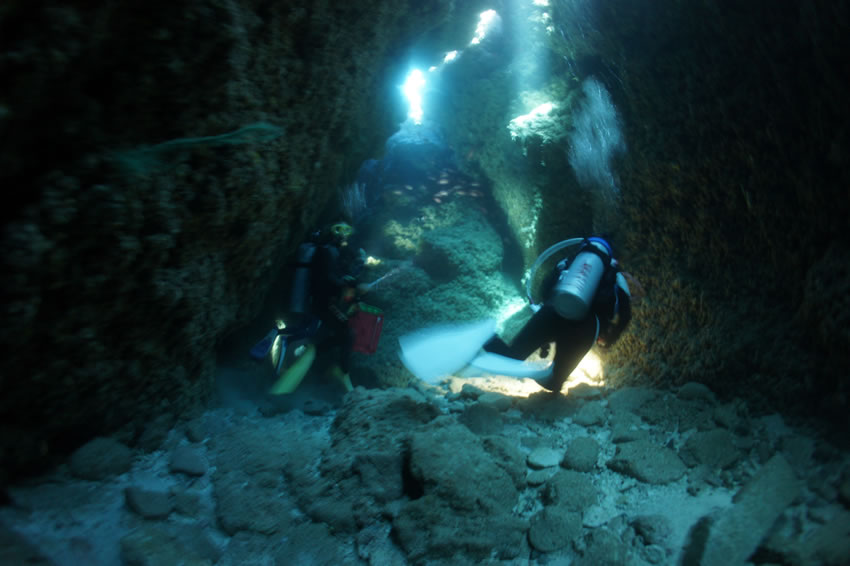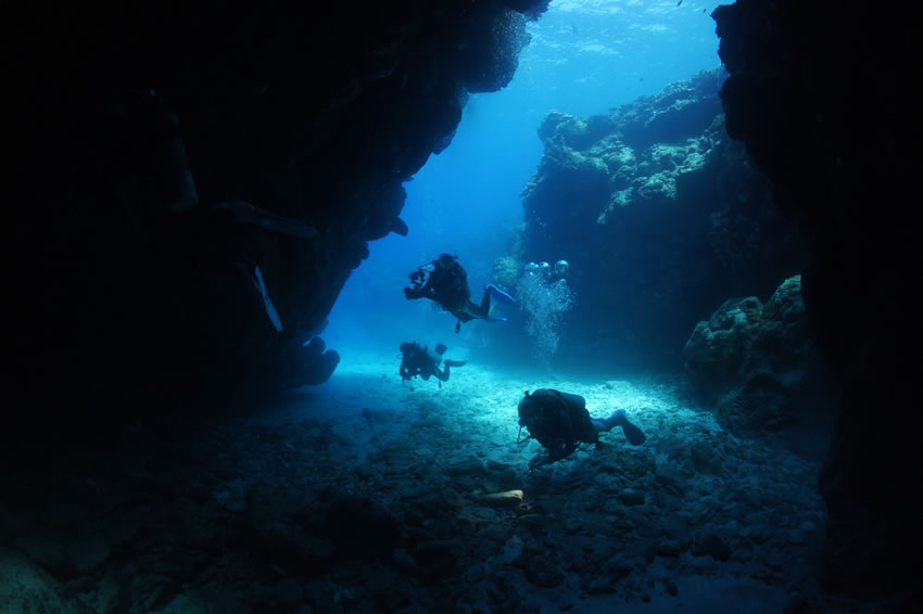 The Blue Cave, which even beginners can enjoy, is very popular. The Kerama Shoto National Park boasts outstanding translucence, with visibility up to 40 or 50m. The appeal of the Miyako area lies in its caves bathed in beautiful blue light and its dynamic topography. In the Yaeyama Islands, known as one of the best places in the world for manta rays, there is a mysterious giant stone structure at Yonaguni Island. In an endlessly transparent sea, coral reefs shimmer in the sunlight and shoals of subtropical fish play.