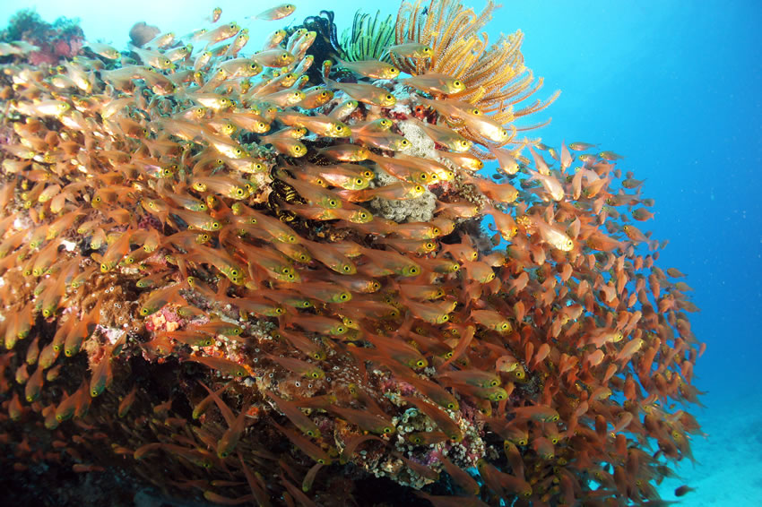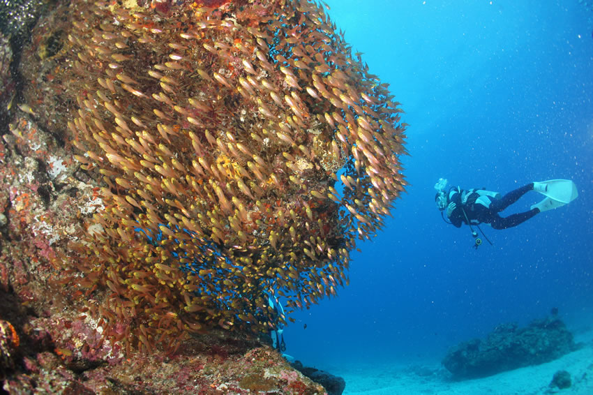 The seas of the Kerama Islands are unrivalled anywhere in the world for their amazing translucence. Known as the sea that all the world loves, it attracts divers from around the world. It has everything that divers want — topography, coral, quantities of every kind of fish, and translucent water.