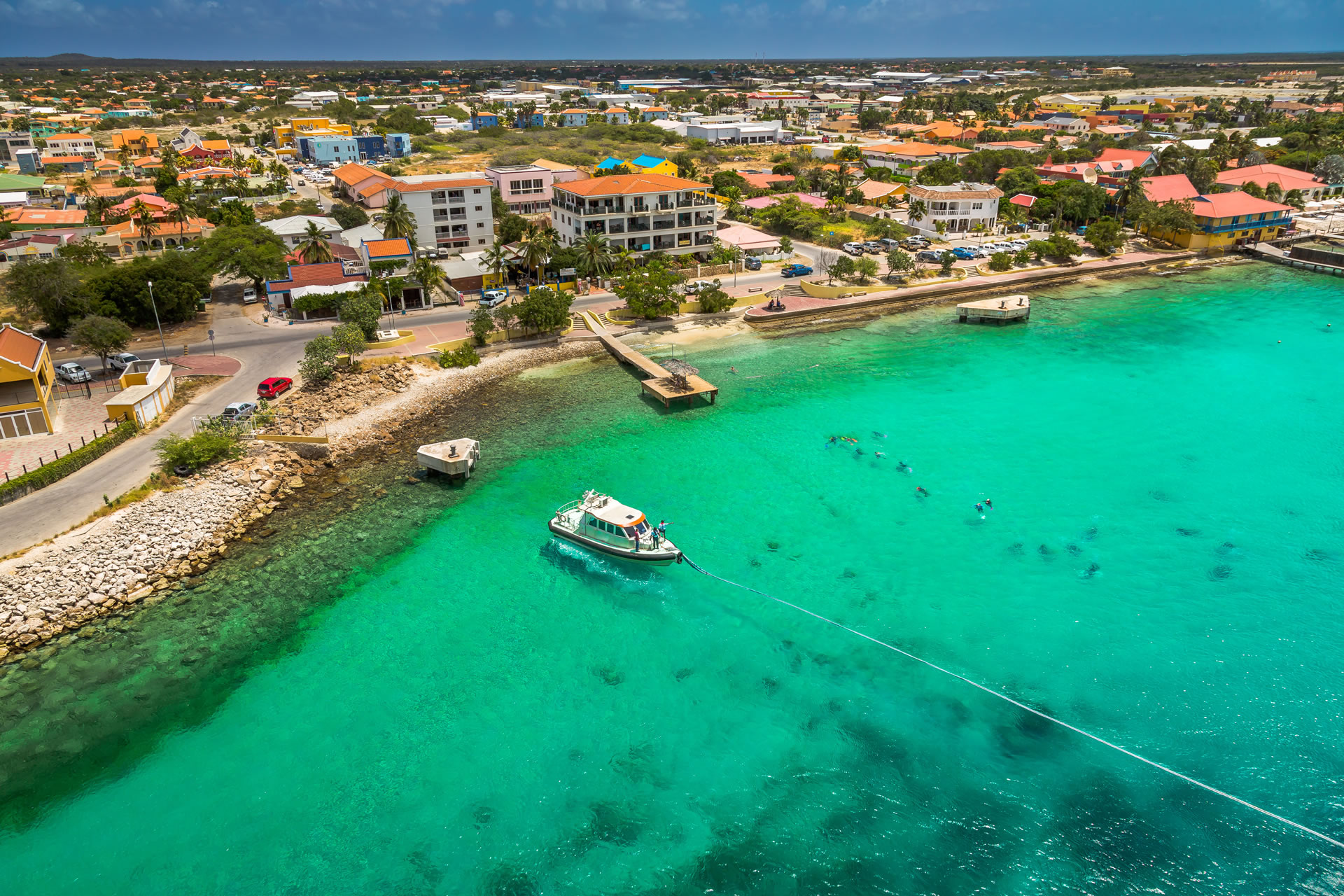 Bonaire er en meget liten øy i den vestlige delen av Karibia og nærmeste nabo er Colombia og Venezuela. Bonaires landskap er nesten ørkenaktig og er ikke for alle. Hvis du forventer en tropisk øy med vaiende palmer og bølger som slår svalt mot strandkanten har du valgt komplett feil destinasjon. Dette er en øy for dykkere som ønsker å oppleve livet under vannflaten. Det som gjør Bonaire til en populær destinasjon er da også korallrevene og stort sett hele kysten rundt Bonaire er da også erklært nasjonalpark Dusinvis av registrerte dykkesteder er tilgjengelig, stort sett alle ut fra land og dykking her er kanskje litt annerledes enn man er vant til andre steder.