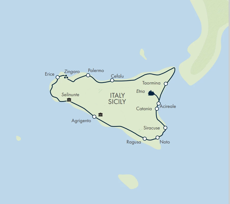 Discover Sicily, the scenic Italian island forged over centuries by Phoenician, Greek, Roman, Arab, Norman and Spanish rulers. On this comprehensive adventure, we explore the very best bits, starting on the volcanic slopes of Mount Etna, before continuing to the towns of Syracuse, Agrigento, and Selinunte – all World Heritage sites. A day in Zingaro National Reserve offers magnificent views over the coast, while there’s also plenty of opportunities to discover the history and heritage of the biggest island in the Mediterranean.Â